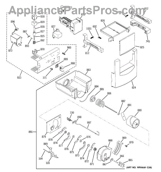 The Ice Bucket is an OEM replacement part for GE refrigerators. It stores and dispenses ice from the freezer compartment. Causes of a bad ice bucket can include wear and tear over time or damage to the bucket or its parts due to mishandling or impact.