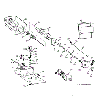This OEM Replacement Part is an ice container assembly for GE side-by-side refrigerators from 1998 models and newer with 24 to 27 cubic feet capacity. The assembly includes a 12 3/8” wide x 12 3/8” long x 14 5/8” tall ice bucket with an integrated auger to rotate and move ice into the dispenser chute. The auger within the assembly helps move the ice cubes forward, enabling easy access and dispensing.