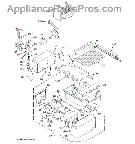 The Ice Bucket and Auger Assembly is an OEM replacement part for GE refrigerators. It consists of an ice storage bucket and an automatic ice-making auger. Together, these parts facilitate reliable ice harvesting, storage, and dispensing. Causes of a bad ice bucket and auger assembly can include damaged auger parts from jamming, worn gears preventing smooth rotation, or cracked ice storage infrastructure inhibiting ice retention and dispensing accuracy. Symptoms of a bad ice bucket and auger assembly include:
