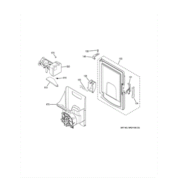 The Ice Box Door Assy is an OEM part for GE refrigerators. It is the complete door assembly housing the storage bins for ice cubes on the fresh food door.