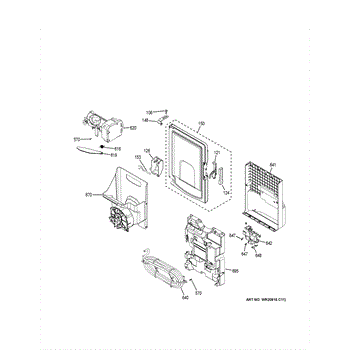 The Ice Box Door Assy is an OEM part for GE refrigerators. It is the complete door assembly housing the storage bins for ice cubes on the fresh food door.