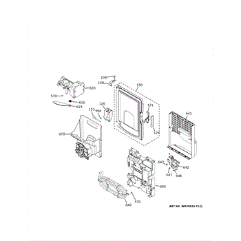 The Ice Box Door Assy is an OEM part for GE refrigerators. It is the complete door assembly housing the storage bins for ice cubes on the fresh food door.