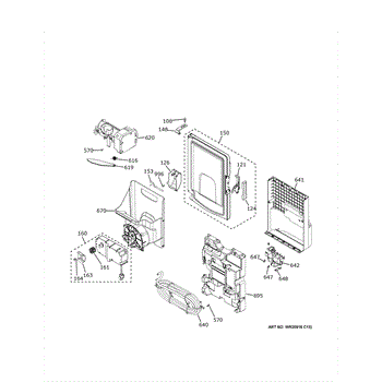 The Ice Box Door Assy is an OEM part for GE refrigerators. It is the complete door assembly housing the storage bins for ice cubes on the fresh food door.