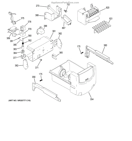 The Bucket and auger Assembly is an OEM part for GE refrigerators. It is located inside the freezer and contains the storage bucket for ice production along with the gear-driven auger mechanism. The auger works continuously during the freezing process, pushing ice cubes from the evaporator plate into the storage bucket for easy access through the dispensing door. Causes of a bad bucket and auger assembly can include worn or damaged gears that impair proper rotation of the auger, cracks or leaks in the storage bucket compromising food storage, or frozen components preventing mechanical function. Symptoms of failure include: