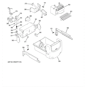 The Bucket and auger Assembly is an OEM part for GE refrigerators. It is located inside the freezer and contains the storage bucket for ice production along with the gear-driven auger mechanism. The auger works continuously during the freezing process, pushing ice cubes from the evaporator plate into the storage bucket for easy access through the dispensing door. Causes of a bad bucket and auger assembly can include worn or damaged gears that impair proper rotation of the auger, cracks or leaks in the storage bucket compromising food storage, or frozen components preventing mechanical function. Symptoms of failure include: