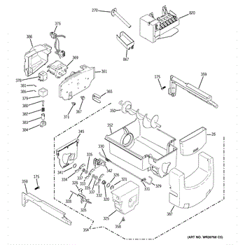 The Ice Bucket & Auger is an OEM replacement part for GE refrigerators. This assembly includes both the ice bucket and the auger, which work together to store and dispense ice. The ice bucket holds the ice, while the auger moves the ice from the bucket to the dispenser when you request ice from the refrigerator's front panel. Symptoms of a bad Ice Bucket & Auger include:
