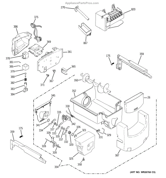 The Ice Bucket & Auger is an OEM replacement part for GE refrigerators. This assembly includes both the ice bucket and the auger, which work together to store and dispense ice. The ice bucket holds the ice, while the auger moves the ice from the bucket to the dispenser when you request ice from the refrigerator's front panel. Symptoms of a bad Ice Bucket & Auger include:
