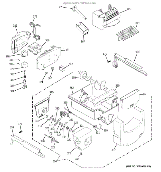 The Ice Bucket & Auger is an OEM replacement part for GE refrigerators. This assembly includes both the ice bucket and the auger, which work together to store and dispense ice. The ice bucket holds the ice, while the auger moves the ice from the bucket to the dispenser when you request ice from the refrigerator's front panel. Symptoms of a bad Ice Bucket & Auger include: