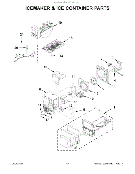 The Ice Container Assembly is an OEM component for Whirlpool refrigerators. It is the bin that collects and stores ice produced by the ice maker. With its precise design and durable construction, the ice container allows ice cubes to easily drop down through the chute from the ice maker.