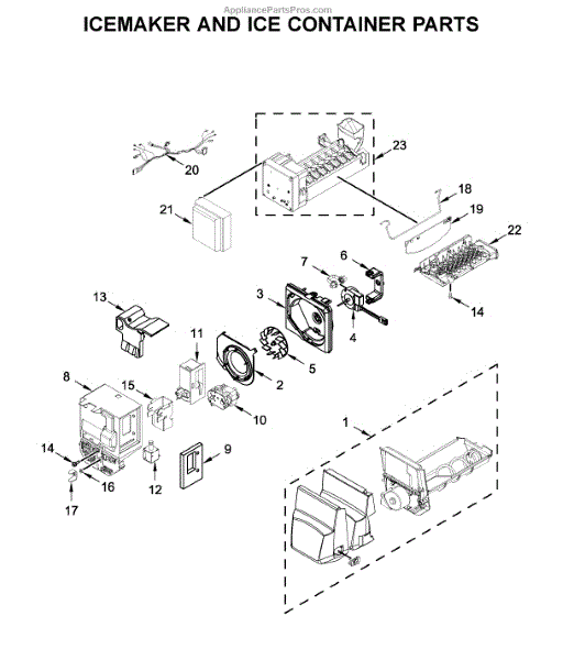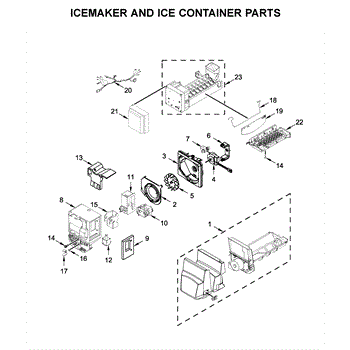 The Ice Container Assembly is an OEM component for Whirlpool refrigerators. It is the bin that collects and stores ice produced by the ice maker. With its precise design and durable construction, the ice container allows ice cubes to easily drop down through the chute from the ice maker.