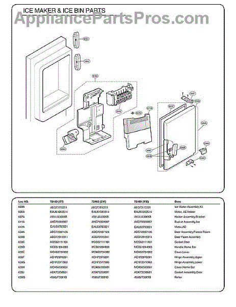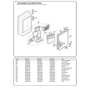 The Ice Maker Assembly is an OEM replacement part for LG refrigerators. It contains the complete ice-making components including the ice tray, ejector mechanism, and fill tube.