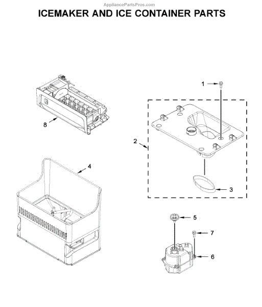The Ice Container is an OEM part for Whirlpool refrigerators. It is designed to store ice produced by the in-door ice maker, ensuring easy access and efficient ice management within the freezer compartment.
