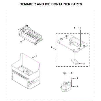 The Ice Container is an OEM part for Whirlpool refrigerators. It is designed to store ice produced by the in-door ice maker, ensuring easy access and efficient ice management within the freezer compartment.