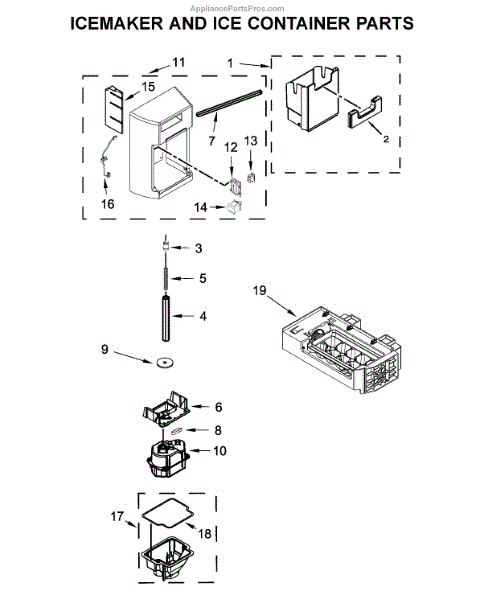A bad ice container assembly can occur due to wear and tear over time or damage to the container or its components. If you notice symptoms such as the ice not dispensing properly, leaks from the dispenser area, or a broken or cracked ice container, it may be time to replace this part.