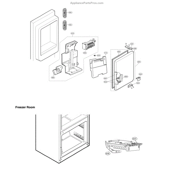 The Ice Dispenser Door Assembly is an OEM part for LG refrigerators. This assembly includes the door and the necessary components that control the opening and closing of the ice dispenser chute. It plays a vital role in maintaining the efficiency of the ice dispensing system by ensuring that the ice chute remains sealed when not in use, preventing warm air from entering the freezer compartment.