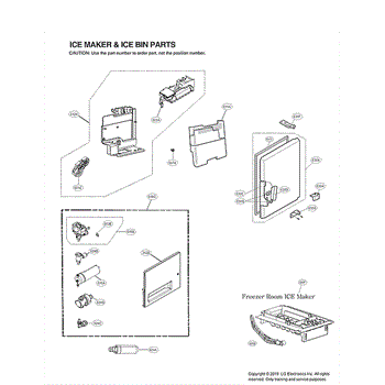 The Ice Dispenser Assembly is an OEM part for LG refrigerators. It incorporates the components responsible for making and dispensing cubed ice.