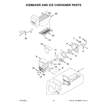 The Ice Container Assembly is an OEM component for Whirlpool refrigerators. It is the bin that collects and stores ice produced by the ice maker. With its precise design and durable construction, the ice container allows ice cubes to easily drop down through the chute from the ice maker.
