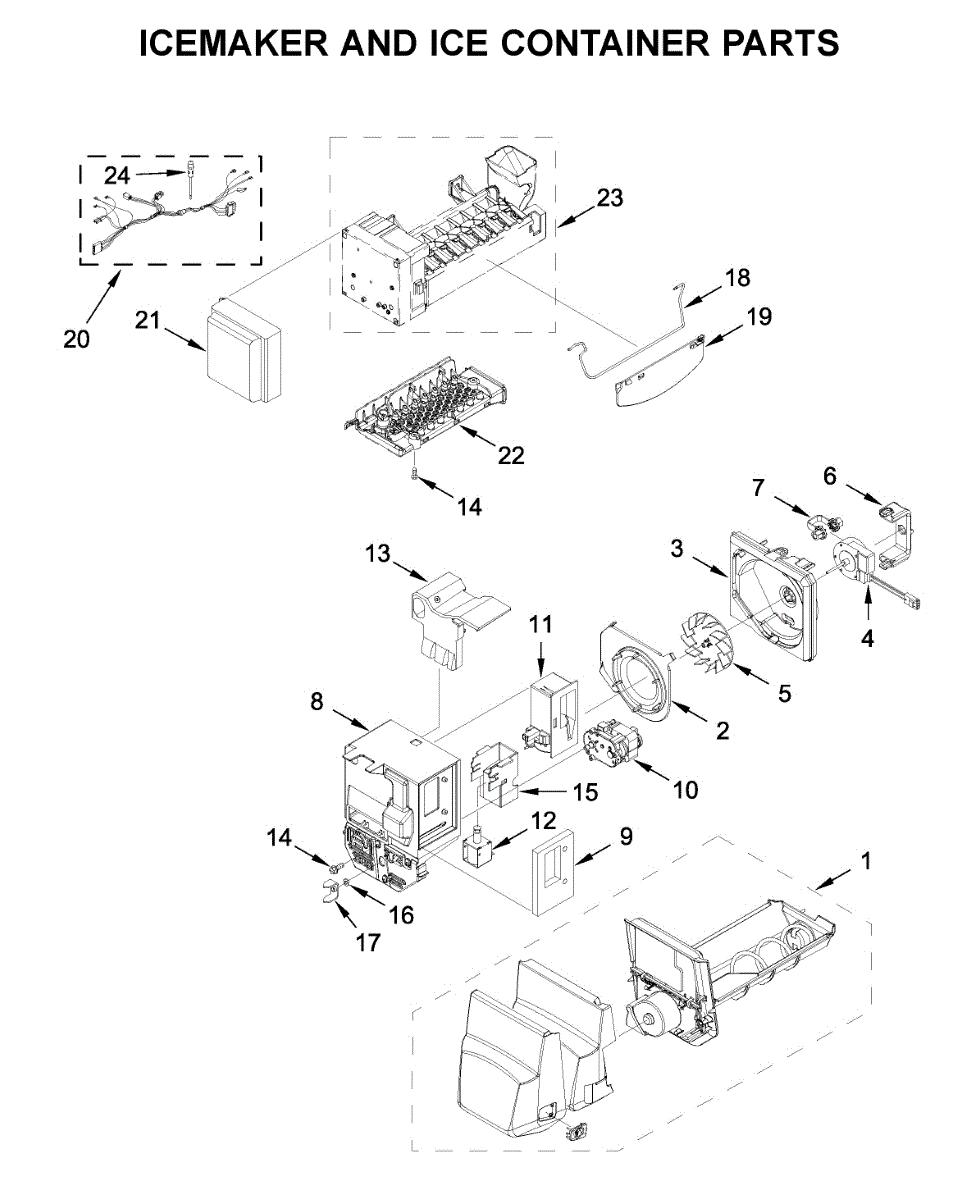 Ice won't dispense or jams in chute? A cracked or damaged ice container assembly may be the cause. This bin collects and stores ice. Easy DIY repair.