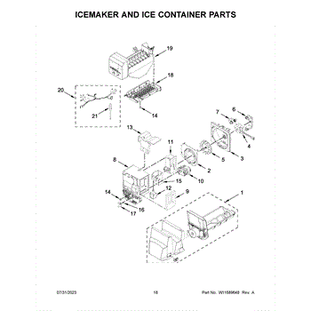 The Ice Container Assembly is an OEM component for Whirlpool refrigerators. It is the bin that collects and stores ice produced by the ice maker. With its precise design and durable construction, the ice container allows ice cubes to easily drop down through the chute from the ice maker.