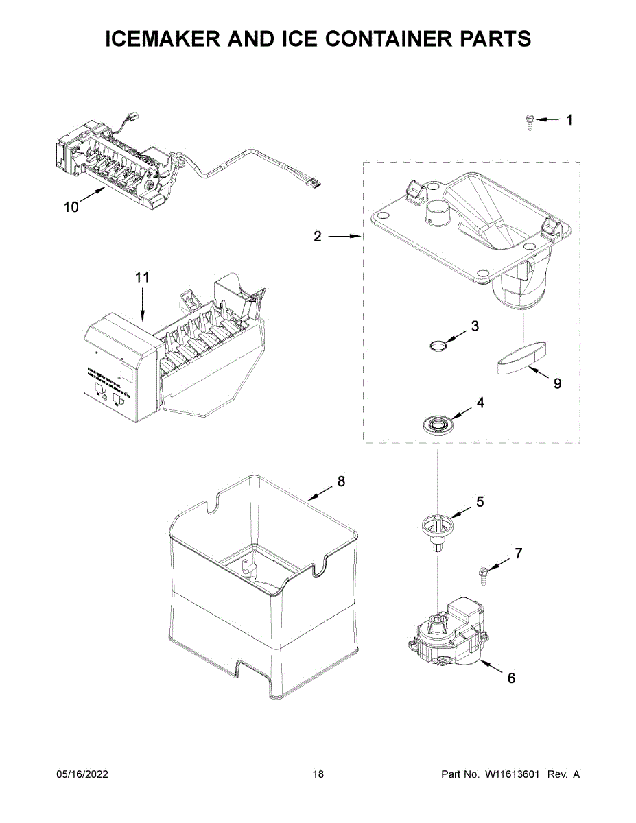 Fix a cracked or broken ice bin causing ice jams or dispenser issues. This complete ice container assembly includes auger and blades. Simple snap-in install.