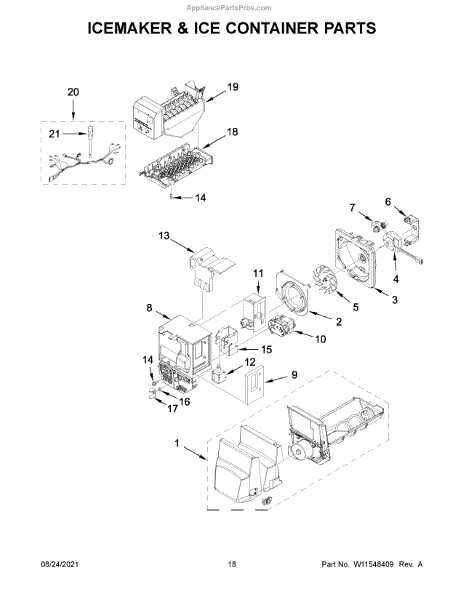 The Ice Container Assembly is an OEM component for Whirlpool refrigerators. It is the bin that collects and stores ice produced by the ice maker. With its precise design and durable construction, the ice container allows ice cubes to easily drop down through the chute from the ice maker.