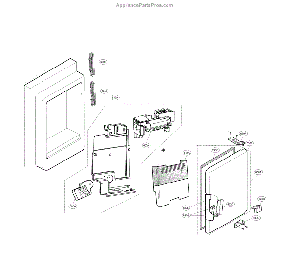 The Lever Dispenser is an OEM part for LG refrigerators. It is the control mechanism responsible for dispensing crushed ice and water through the refrigerator door without opening it. The lever and dispensing components are designed to withstand frequent use while retaining smooth, reliable operation.