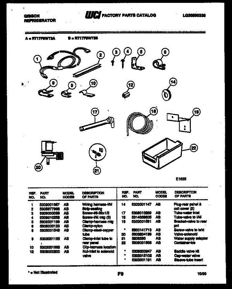 Secures water, drain, and refrigerant tubing to prevent movement and wear. Replace if tubes are loose, vibrating, or damaged. Verify fit with model number.