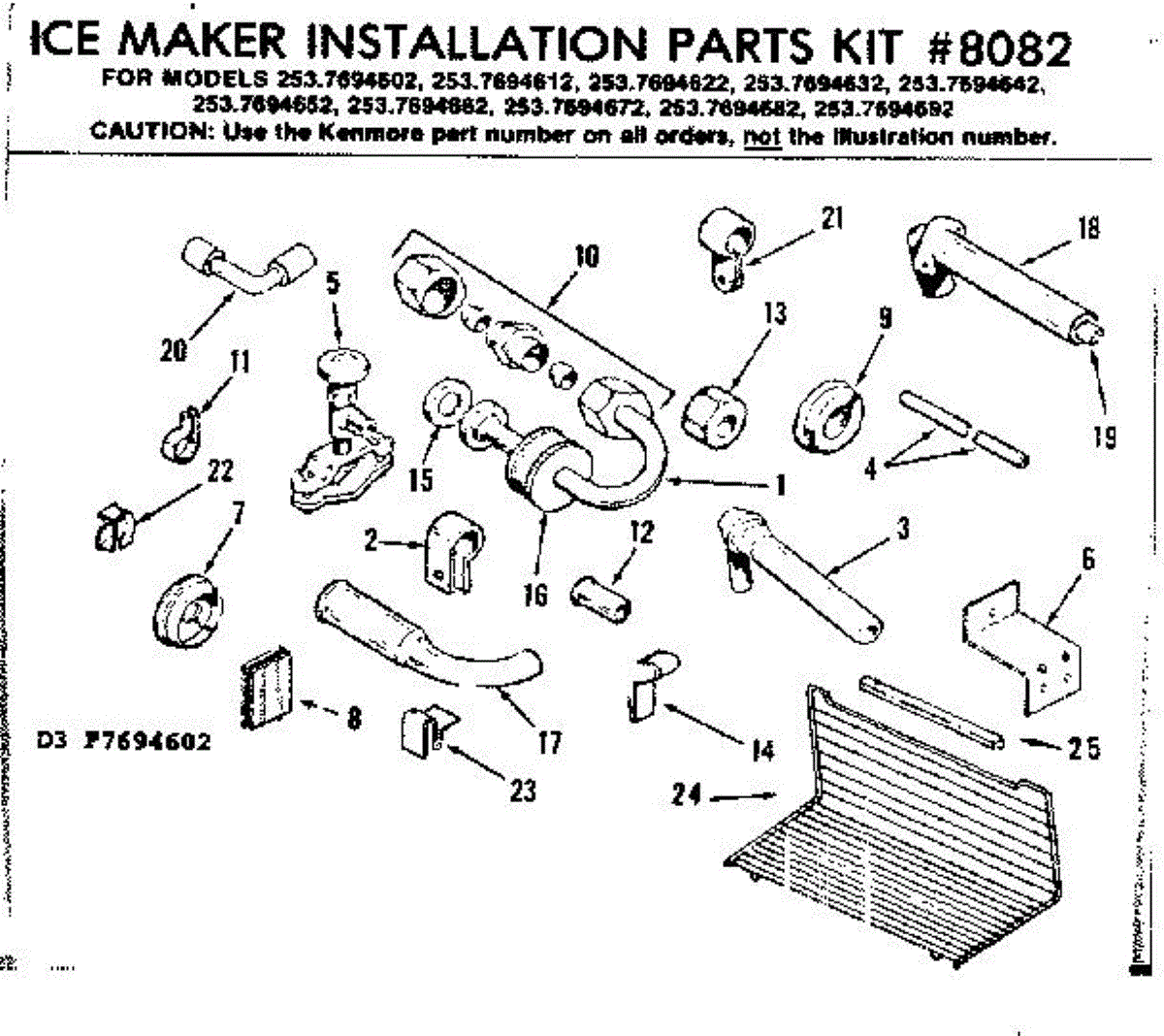 Parts for Kenmore 253.7694682 (2537694682, 253 7694682): Ice Maker Installation Parts Kit No 8082 Parts
