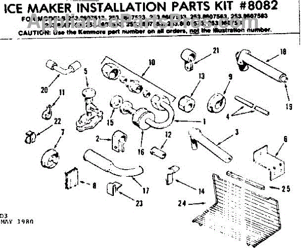Parts for Kenmore 253.8607523 (2538607523, 253 8607523): Ice Maker Installation Parts Kit No. 8082 Parts