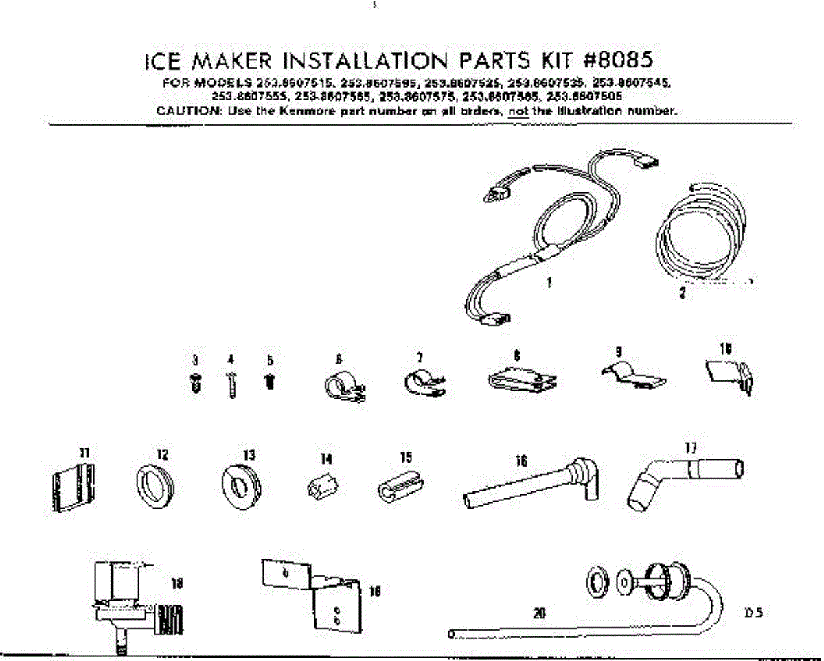 Parts for Kenmore 253.8607545 (2538607545, 253 8607545): Ice Maker Installation Parts