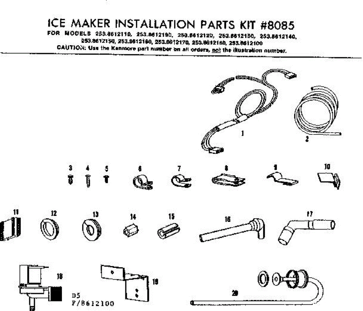 Parts for Kenmore 253.8612110 (2538612110, 253 8612110): Ice Maker Installation Parts Kit Parts