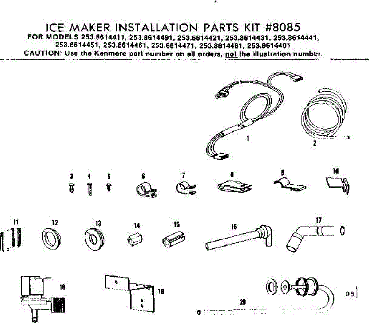Parts for Kenmore 253.8614411 (2538614411, 253 8614411): Ice Maker Installation Parts