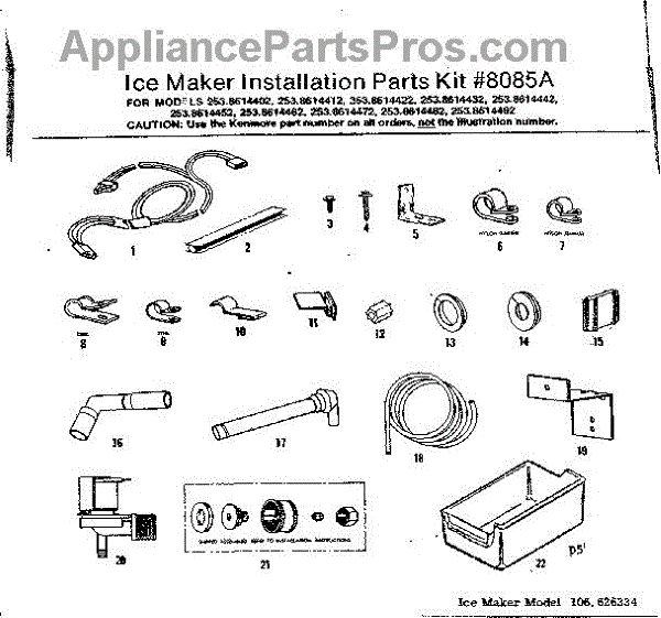Parts for Kenmore 253.8614442 (2538614442, 253 8614442): Ice Maker Installation Parts