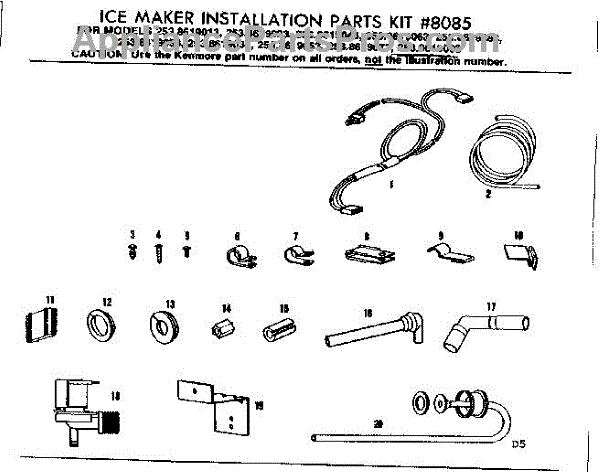 Parts for Kenmore 253.8619023 (2538619023, 253 8619023): Ice Maker Installation Parts Kit Parts