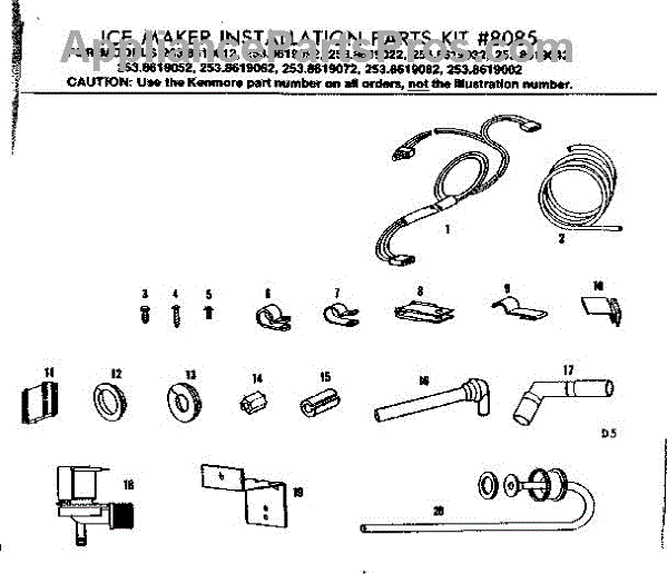 Parts for Kenmore 253.8619082 (2538619082, 253 8619082): Ice Maker Installation Parts