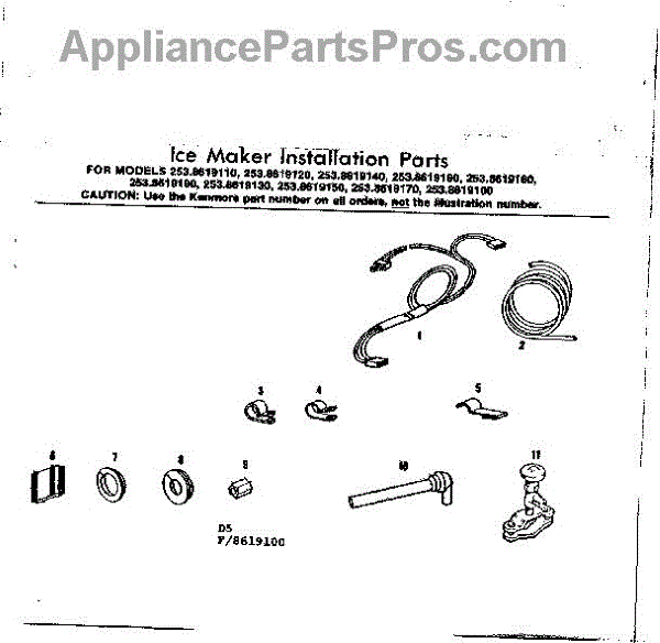 Parts for Kenmore 253.8619160 (2538619160, 253 8619160): Ice Maker Installation Parts