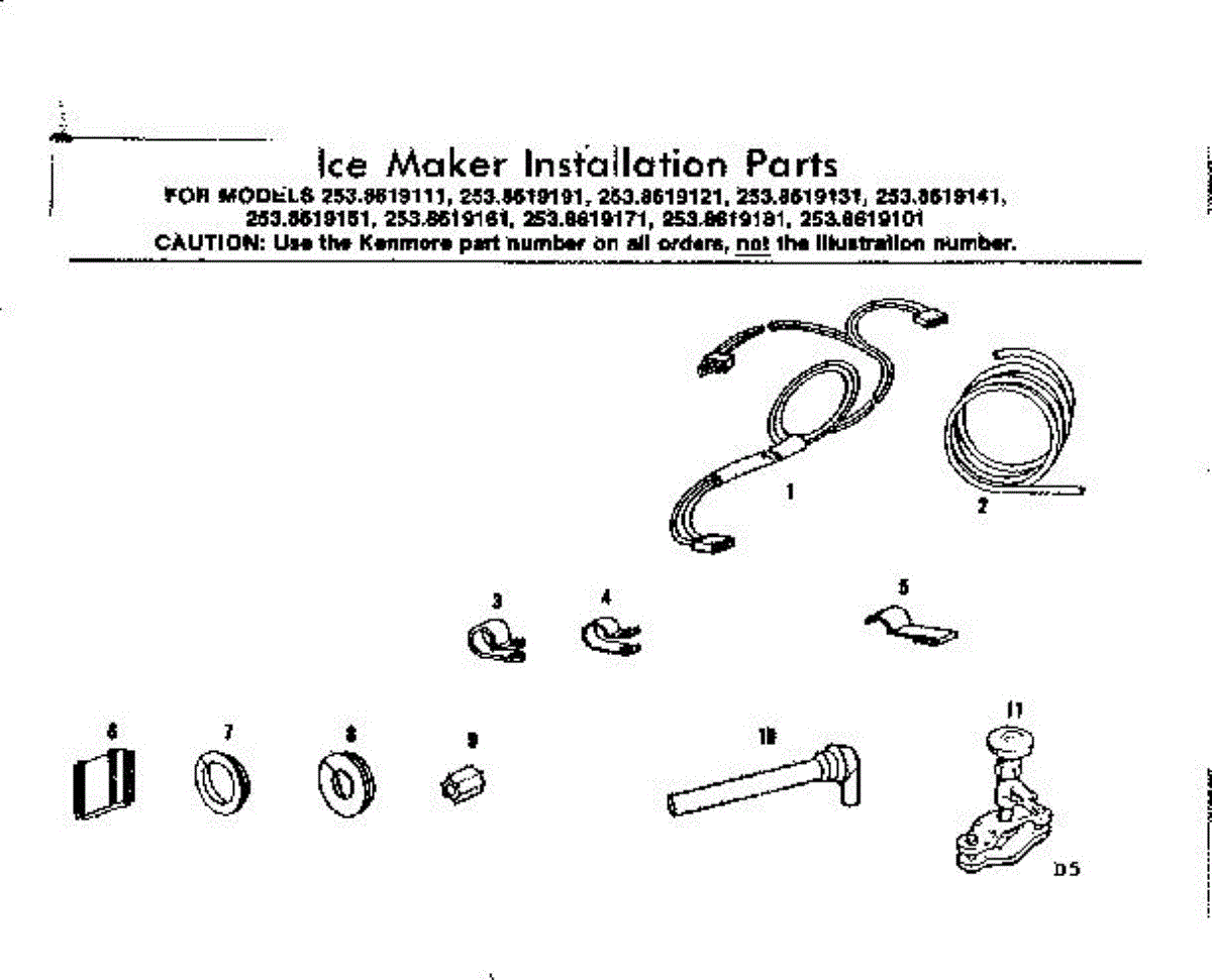 Parts for Kenmore 253.8619191 (2538619191, 253 8619191): Ice Maker Installation Parts