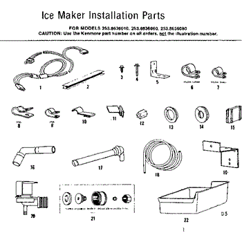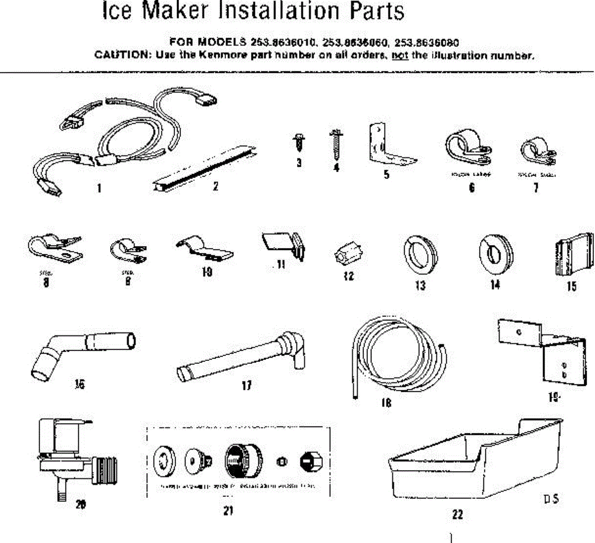 Parts for Kenmore 253.8636080 (2538636080, 253 8636080): Ice Maker Installation Parts