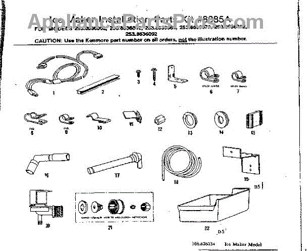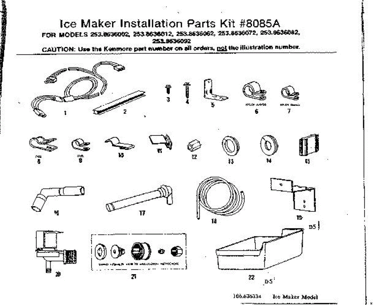 Parts for Kenmore 253.8636082 (2538636082, 253 8636082): Ice Maker Installation Parts