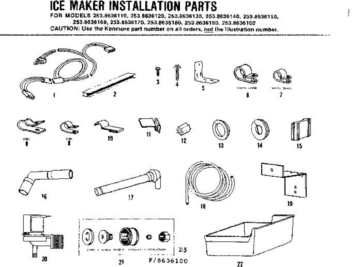 Parts for Kenmore 253.8636110 (2538636110, 253 8636110): Ice Maker Installation Parts Kit Parts