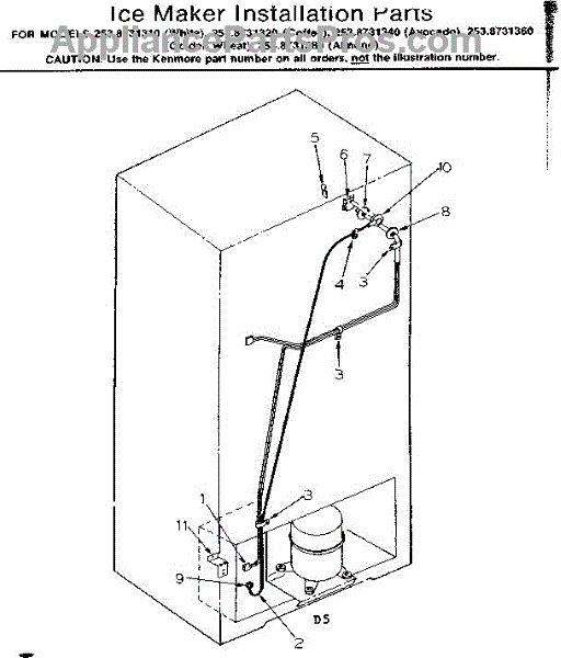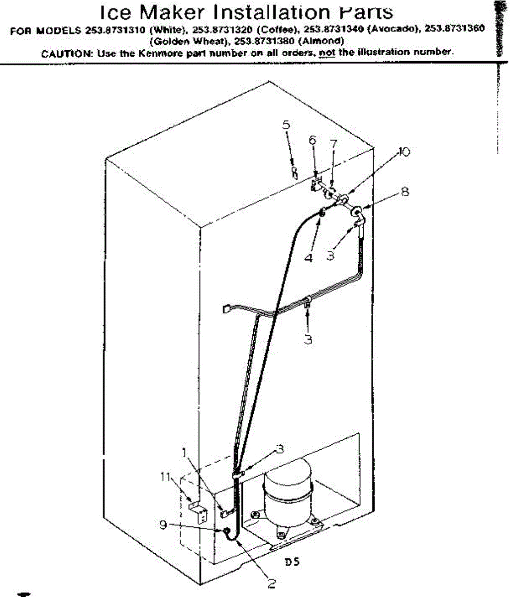 Parts for Kenmore 253.8731360 (2538731360, 253 8731360): Ice Maker Installation Part Parts