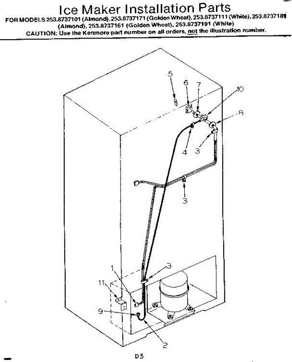 Parts for Kenmore 253.8737161 (2538737161, 253 8737161): Ice Maker Installation Parts