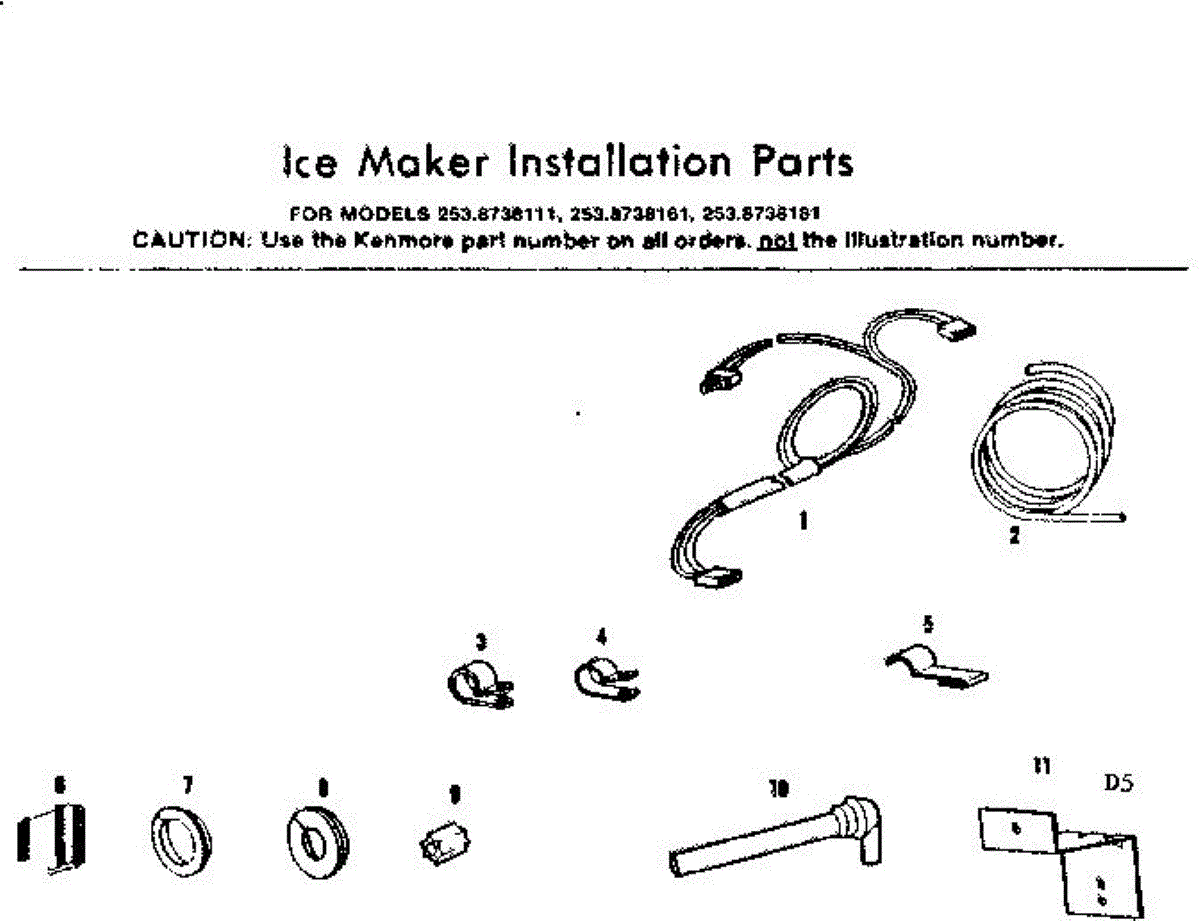 Parts for Kenmore 253.8738111 (2538738111, 253 8738111): Ice Maker Installation Parts