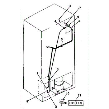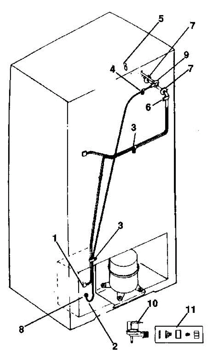 Water fill tube that directs water from the supply line into the ice maker. Replace if cracked, frozen, or the connection point is damaged or broken.