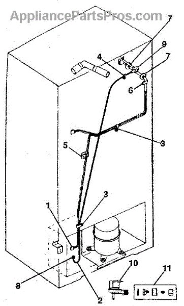 Water fill tube that directs water from the supply line into the ice maker. Replace if cracked, frozen, or the connection point is damaged or broken.