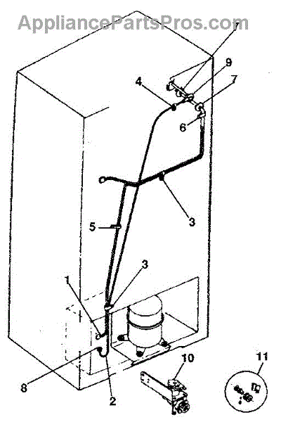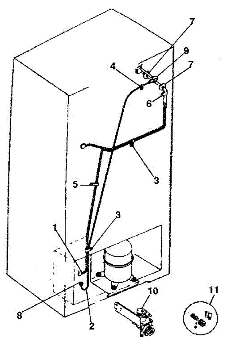 Water fill tube that directs water from the supply line into the ice maker. Replace if cracked, frozen, or the connection point is damaged or broken.