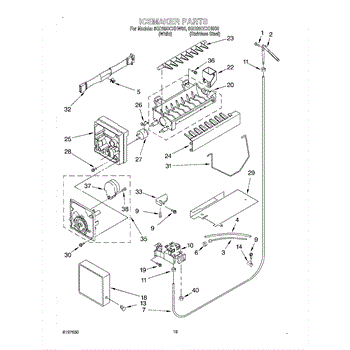 The Ice Container Assembly is an OEM part for Whirlpool refrigerators. This assembly includes the ice bin, where ice is collected, and often features integrated mechanisms or augers for dispensing ice through the refrigerator's door.