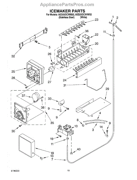 Causes of a bad Ice Container Assembly can include cracks or damage to the bin, which can lead to ice leaks or accumulation in the freezer; wear or malfunction of the dispensing mechanism, affecting its ability to deliver ice.