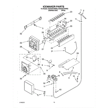 Causes of a bad Ice Container Assembly can include cracks or damage to the bin, which can lead to ice leaks or accumulation in the freezer; wear or malfunction of the dispensing mechanism, affecting its ability to deliver ice.