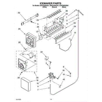 Causes of a bad Ice Container Assembly can include cracks or damage to the bin, which can lead to ice leaks or accumulation in the freezer; wear or malfunction of the dispensing mechanism, affecting its ability to deliver ice.